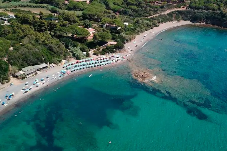 Der Parkplatz ist begrenzt: Wenn Sie spät am Morgen oder am Wochenende ankommen, müssen Sie sich zwischen kostenlosen und kostenpflichtigen Plätzen entscheiden. Am besten vor 9–12 Uhr ankommen, um sicher einen Platz zu finden. Alternativ ermöglicht der Parkplatz am Kap Acquarilli auch einen Panoramablick, bevor Sie hinuntergehen. Denken Sie daran, nicht unvernünftig an der Straße zu parken: Es ist verboten, unsicher und führt oft zu Strafen. Schließlich sollten Sie wegen der Südausrichtung Sonnencreme, Hut und ausreichend Wasser mitbringen: Die Hitze ist spürbar, aber die Schönheit des Strandes von Norsi Elba entschädigt für jede Mühe.