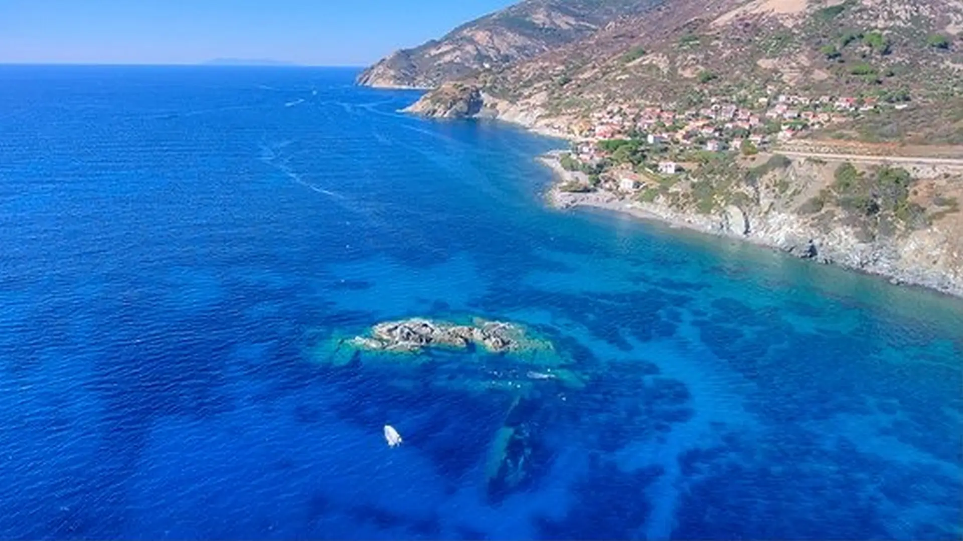 Der Strand des Wracks befindet sich im kleinen Dorf Pomonte, einem Ortsteil der Gemeinde Marciana, an der südwestlichen Küste der Insel Elba. Obwohl er oft mit dem bekannteren Marina di Campo in Verbindung gebracht wird, ist dieser Strand von dort aus leicht mit dem Auto in wenigen Minuten zu erreichen und wird daher in Reiseführern häufig mit dem vollständigen Namen „Spiaggia del Relitto Marina di Campo“ angegeben. Diese kleine Bucht ist geprägt von einem Strand aus hellem Kies und kleinen Steinen, eingebettet in eine noch weitgehend unberührte Natur. Das Wasser ist kristallklar und der Meeresboden fällt sanft ab, was ihn auch für weniger geübte Schwimmer geeignet macht. Der wahre Schatz liegt jedoch nur wenige Meter vom Ufer entfernt: das Wrack von Pomonte, das Skelett des Frachters Elviscot, der 1972 nach einer Kollision mit den Felsen des Scoglio dell’Ogliera gesunken ist.