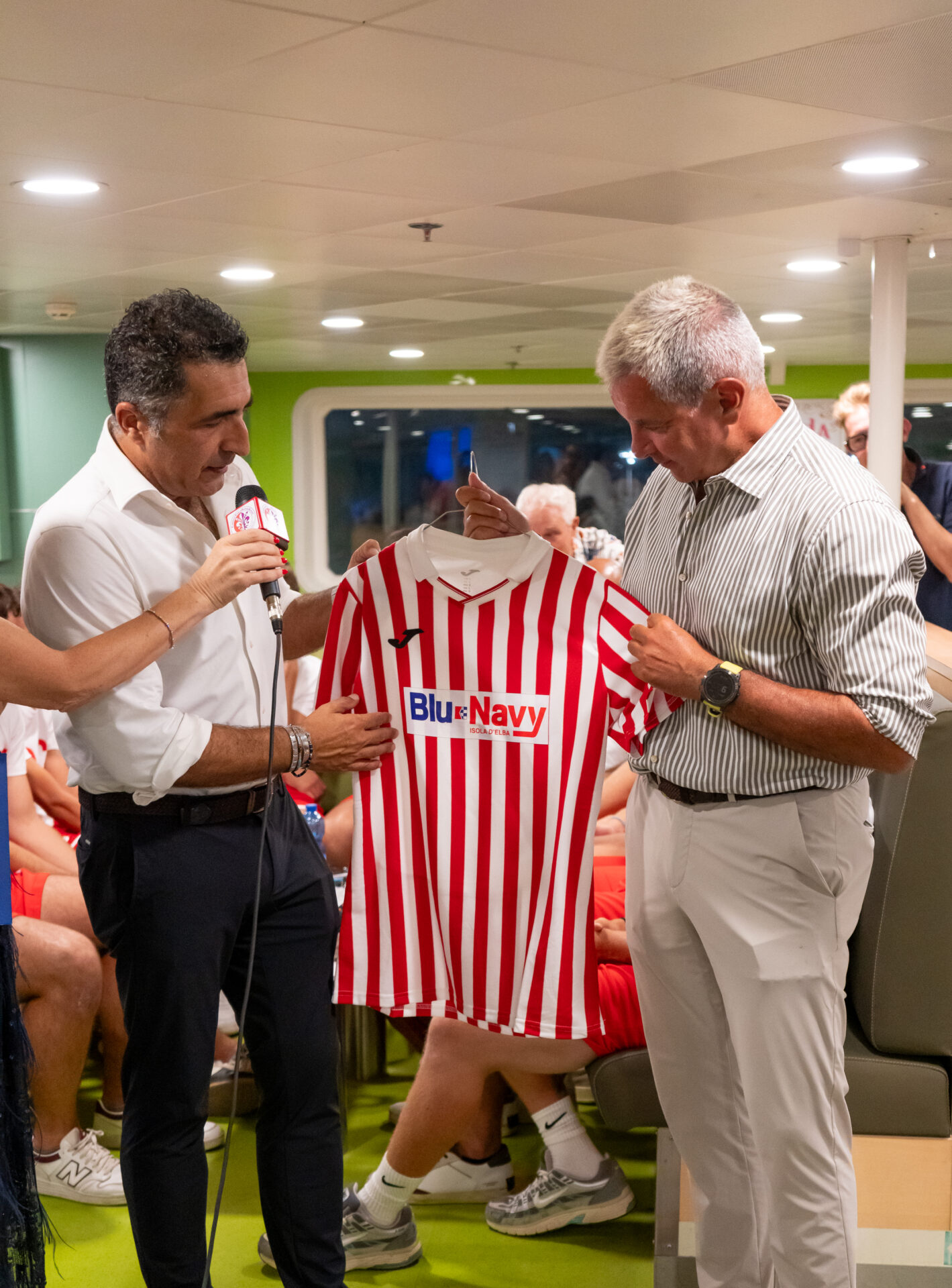 On Monday, August 11, our ship Aethalia hosted a special event: the presentation of the new competitive season and the line-up of the ‘First Team’ players of Audace Isola d’Elba, which Blu Navy is proudly supporting as a sponsor this year.