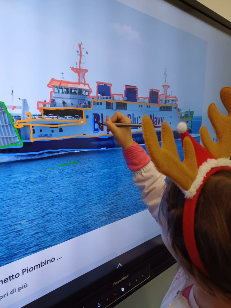 Le projet a impliqué les classes de CM2 des écoles primaires de l’île d’Elbe, invitées à créer, uniquement avec des matériaux recyclés, une maquette de notre ferry Acciarello.