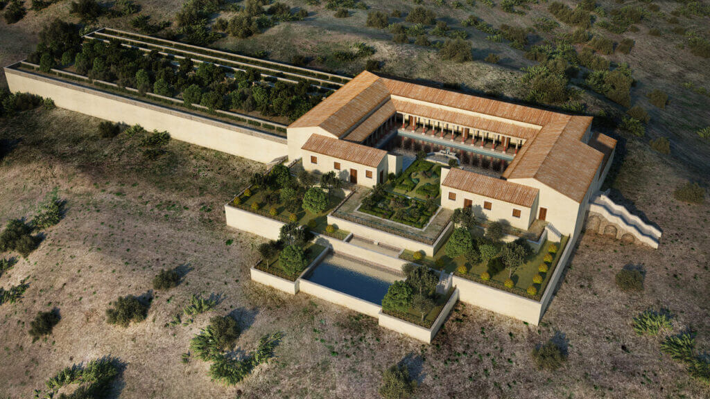 Entouré d’une luxuriante végétation méditerranéenne, le complexe se dresse majestueusement avec ses structures en opus reticulatum, émergeant comme un trésor historique précieux dans un environnement naturel captivant.
